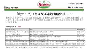 サイゼリヤは2025年12月26日、モーニングメニュー「朝サイゼ」を2026年1月から新たに東京都3店舗、千葉県3店舗でも順次開始することを発表いたしました。 新たに提供開…