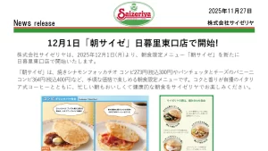 サイゼリヤは2025年12月26日、モーニングメニュー「朝サイゼ」を2026年1月から新たに東京都3店舗、千葉県3店舗でも順次開始することを発表いたしました。